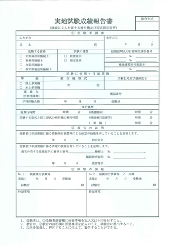 実地試験成績報告書(2人用飛行機)(准定期運送用操縦士を含む)
